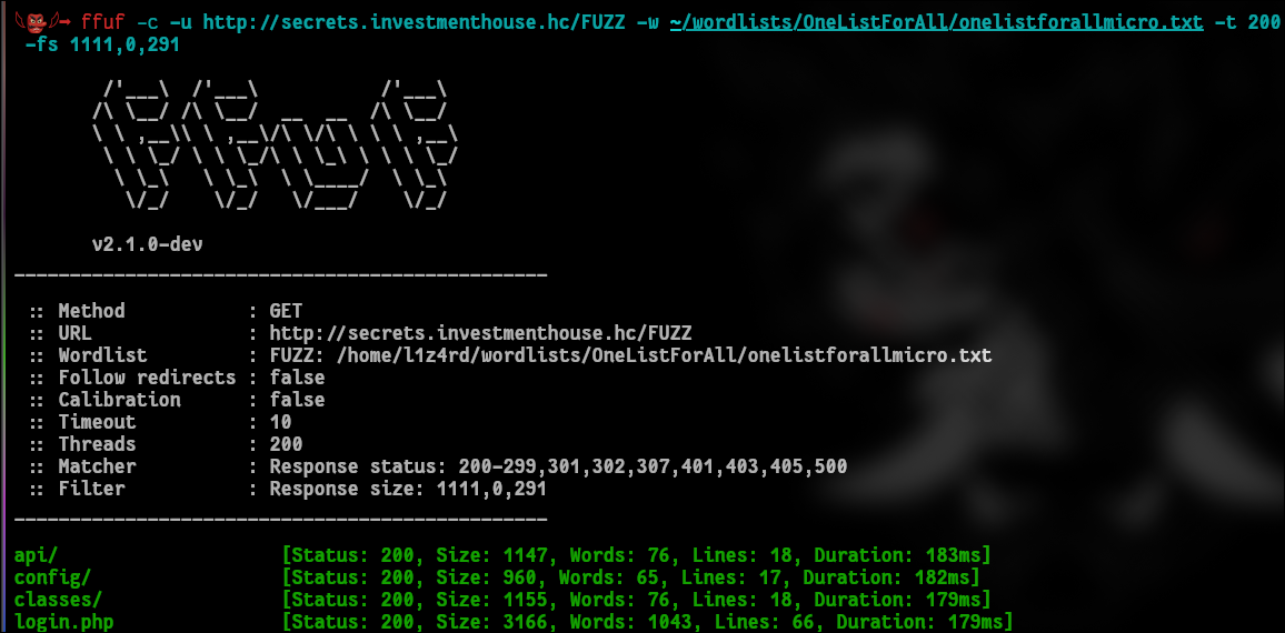 A principio não possui nada de interessante além de uma pagina de login. Não tem muita coisa a se fazer aqui. Porém como todo processo de recon, é claro que será feito aquele fuzzing nervoso, e pra isso usarei o tio ffuf:
