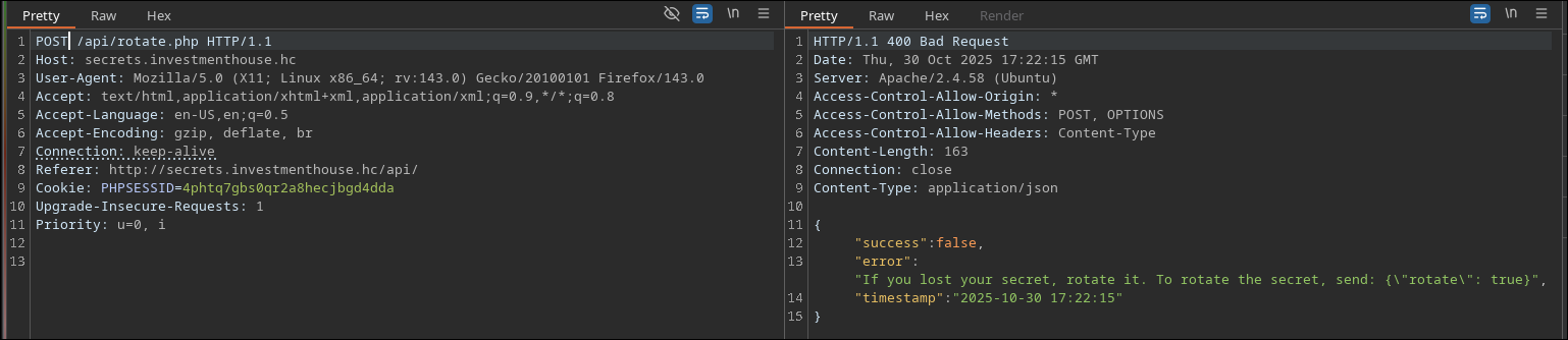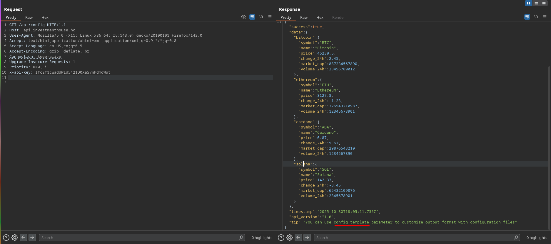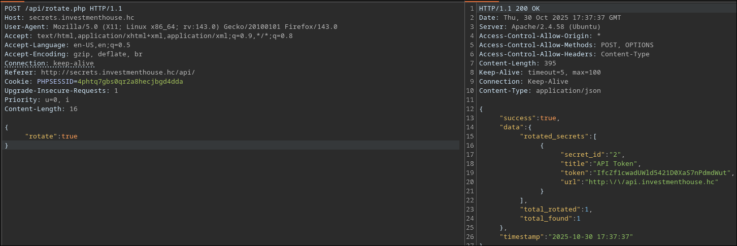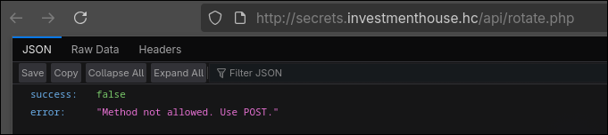 Aqui as coisas começam a ficar mais interessante ainda… no list.php conseguimos identificar um serviço de api (que encontramos no começo do recon com o gobuster) que fornece informações de Cryptos, e o rotate.php que parece ser um endpoint interessante a analisar.
