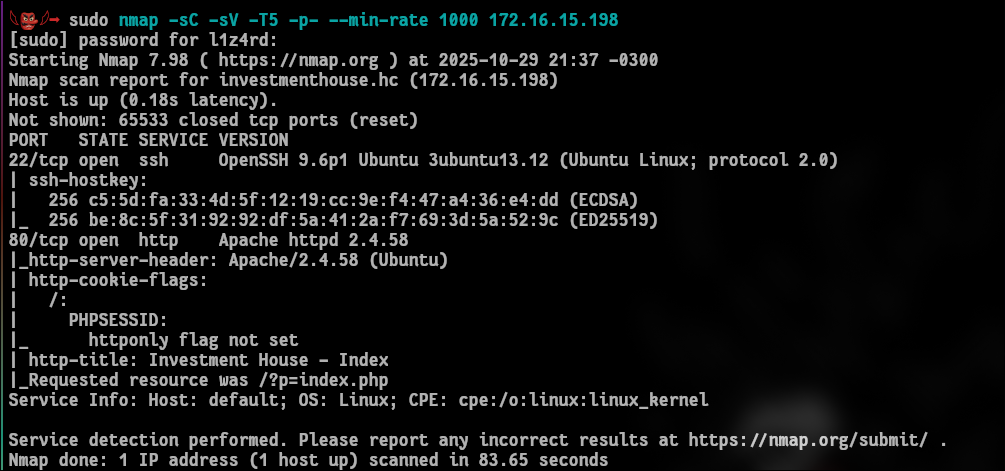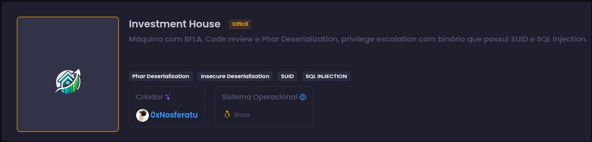 Investment House foi uma das máquinas mais interessantes de explorar porque ela aborda conceitos bastante realístico e intrigantes que forçam você a aprender e buscar por coisas novas (um dos principais benefícios do CTF). Sem mais delongas, vamos para o campo de batalha. XD